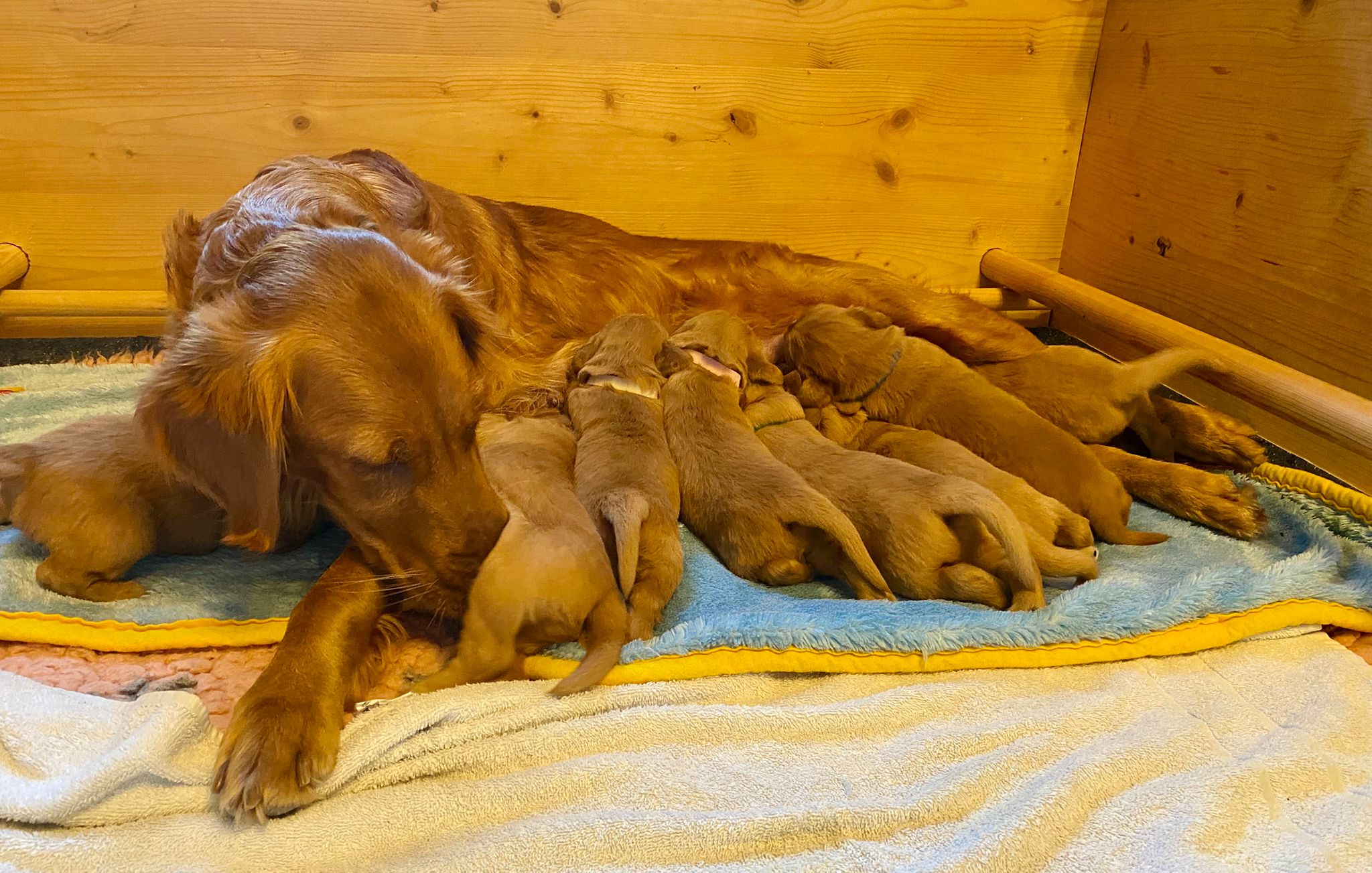 Caramel hat am Sonntag, den 17. November 2024 acht gesunde Welpen bekommen, 5 Rüden und 3 Hündinnen.